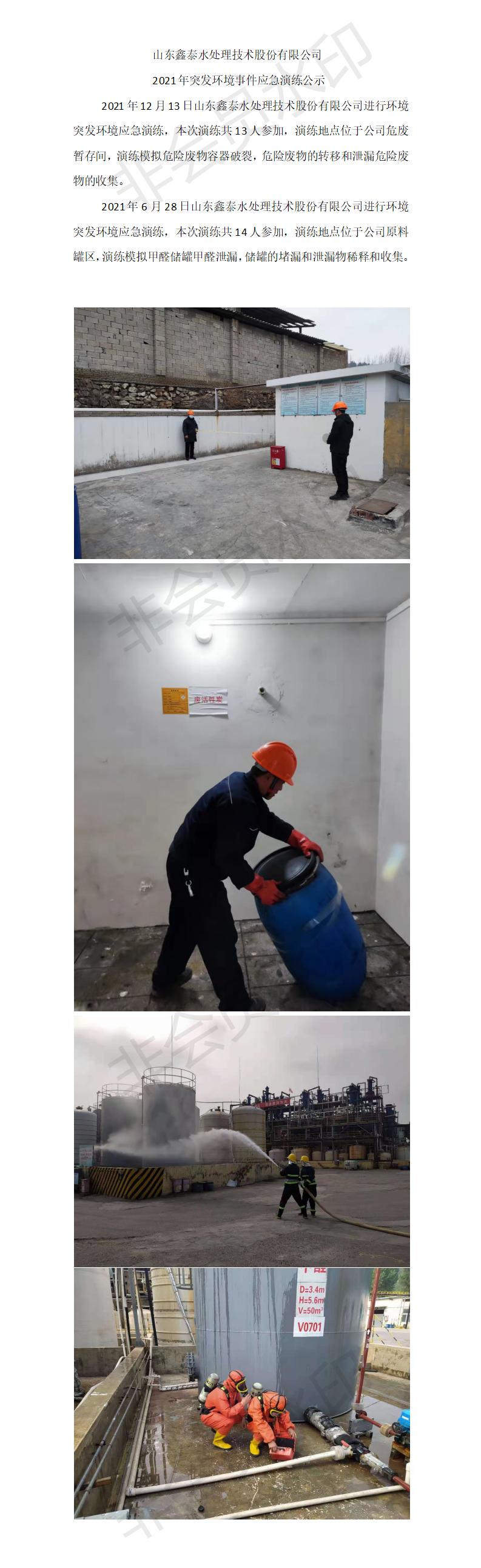 山东鑫泰水处理技术股份有限公司2021年突发环境事件应急演练公示